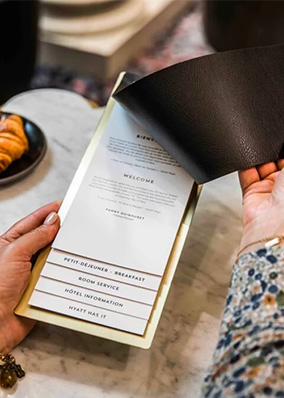 Situé en plein cœur de Paris, l'Hôtel du Louvre est un lieu prestigieux, incarnant le raffinement et l'art de vivre à la française. Nous avons eu l'honneur de collaborer avec cet hôtel emblématique pour la conception de divers supports de cartes et room directory, dans le cadre de sa rénovation.